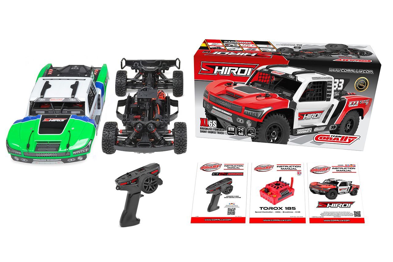 SHIROI XP 6S - The Real RC Short Course Experience Step into the world of Short Course Trucks with the Team Corally SHIROI XP 6S, a true 1/8 scale, 6S-powered machine. SHIROI captures the stance and style of full-size desert racers while delivering the rugged strength and handling demanded by hobbyists who expect more from their RC driving experience.