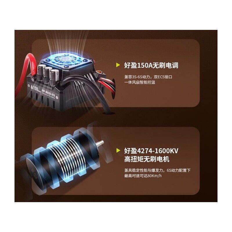 Hobbywing 4274 1600KV brushless motor 11T M1 steel motor pinion Hobbywing MAX8 150A/950A 3~6S ESC 2x EC5 battery connectors