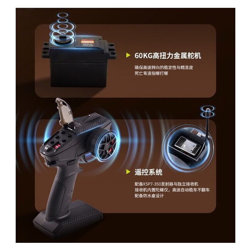 Aluminum chassis upper central front aluminum reinforcement aluminum servo saver link bar rolling bearing transmission 3 differentials Front and rear bevel gears, CNC steel, helical teeth, 33/13T M1.25 steel differential gears