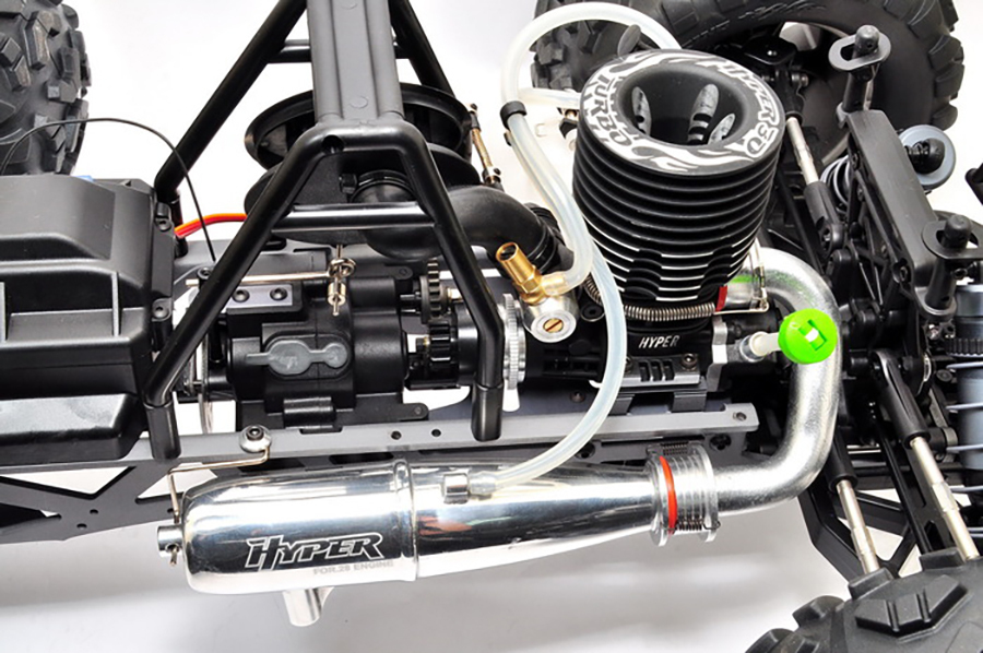 Hyper 30 Big Block pull start engine New Hyper carburettor with venturi New design pull start system Polished In-line connected aluminium tuned pipe Dual stage air filter Factory fitted high performance servos